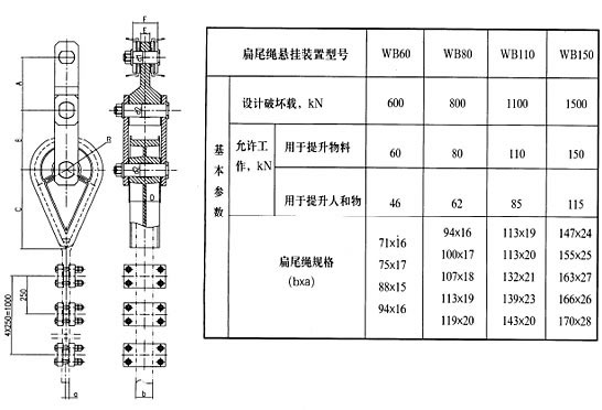 懸掛裝置是在提升或牽引系統(tǒng)中,鋼絲繩與容器之間的連接裝置。我公司可以根據(jù)用戶實(shí)際使用情況提供配套的懸掛裝置。